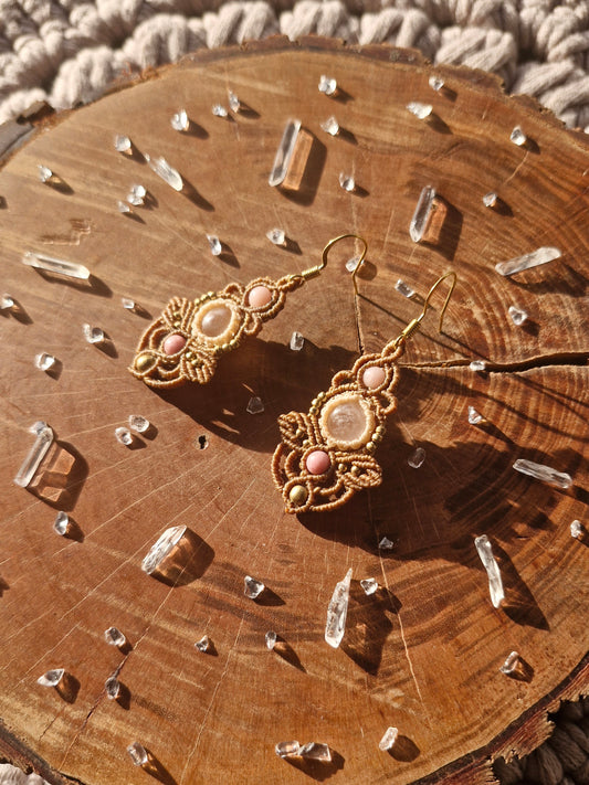 Rose quartz, Pink Opal and Rhodonite earrings