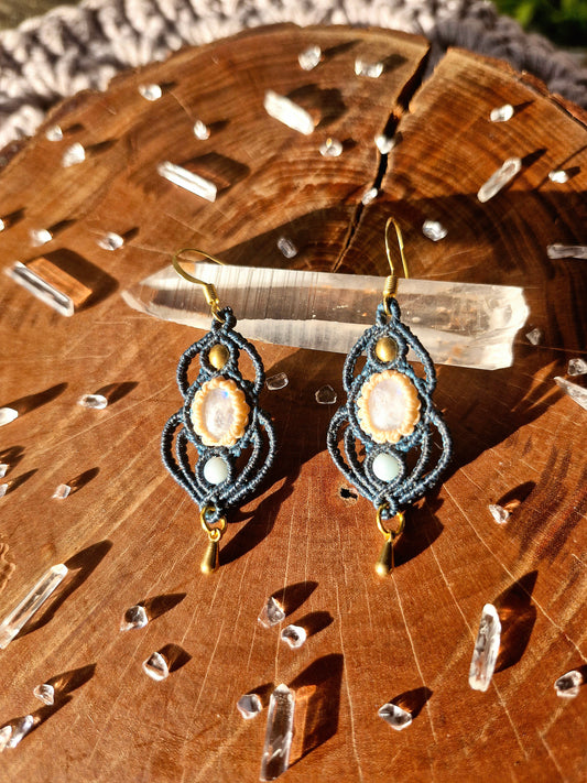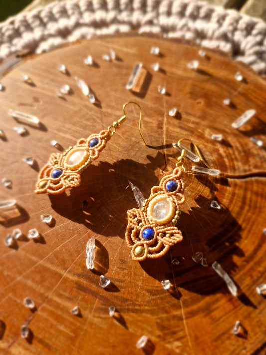 Moonstone and Lapis Lazuli macrame earrings