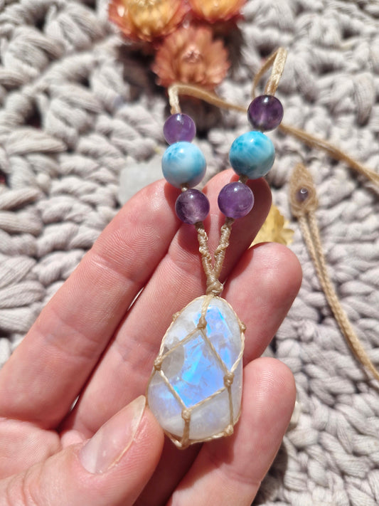Moonstone, Larimar and Amethyst pendant