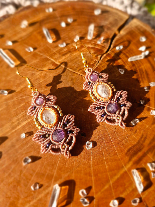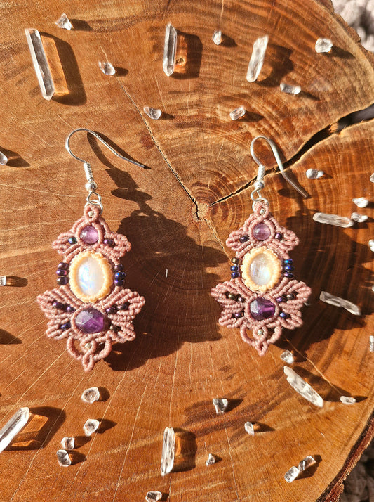 Amethyst and Moonstone macrame earrings (gold)
