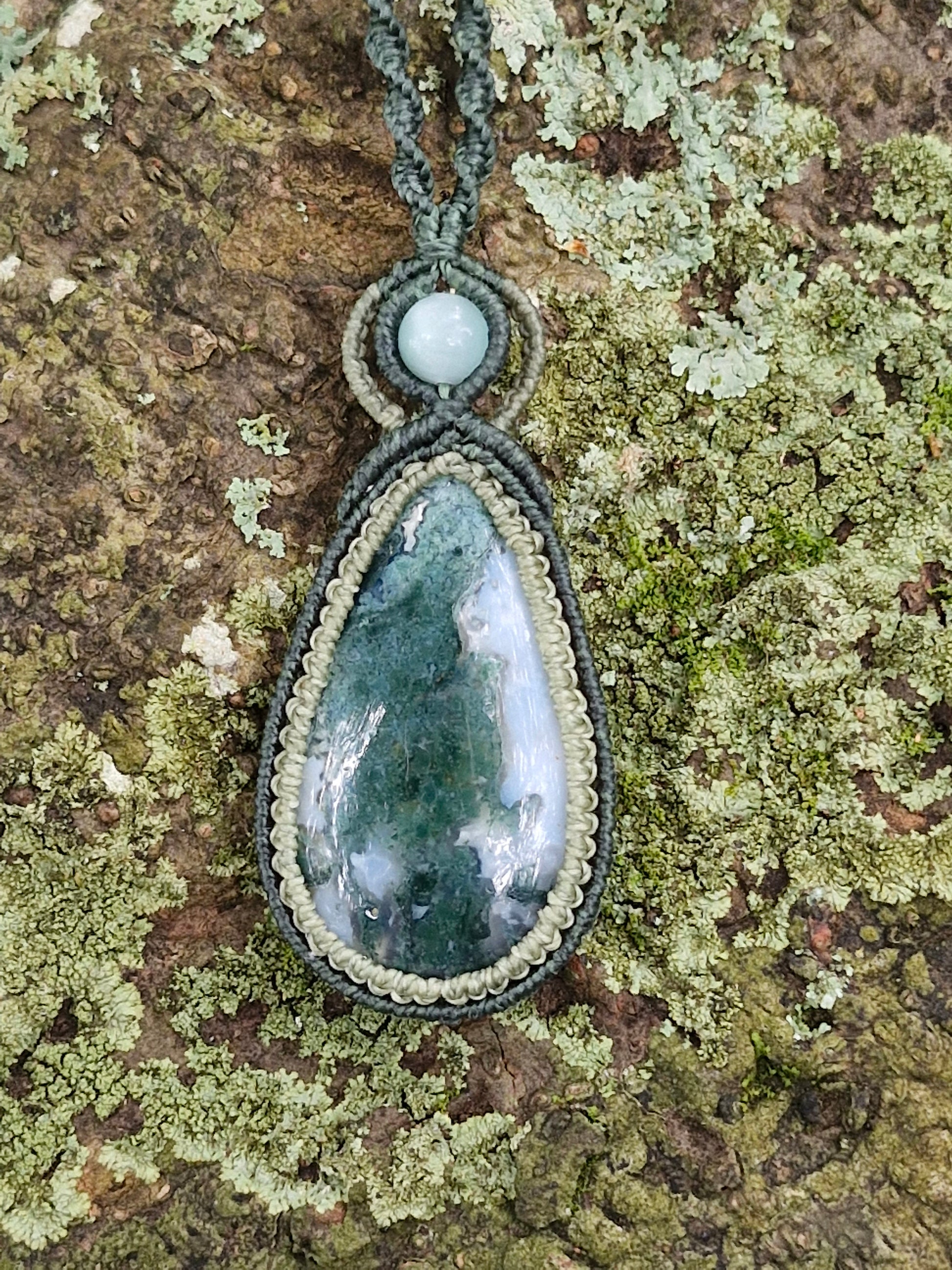 This stunning Moss agate is a world in itself. With magnificent green hues dancing throughout. Energetic properties of moss agate support peace, stability and new beginnings.