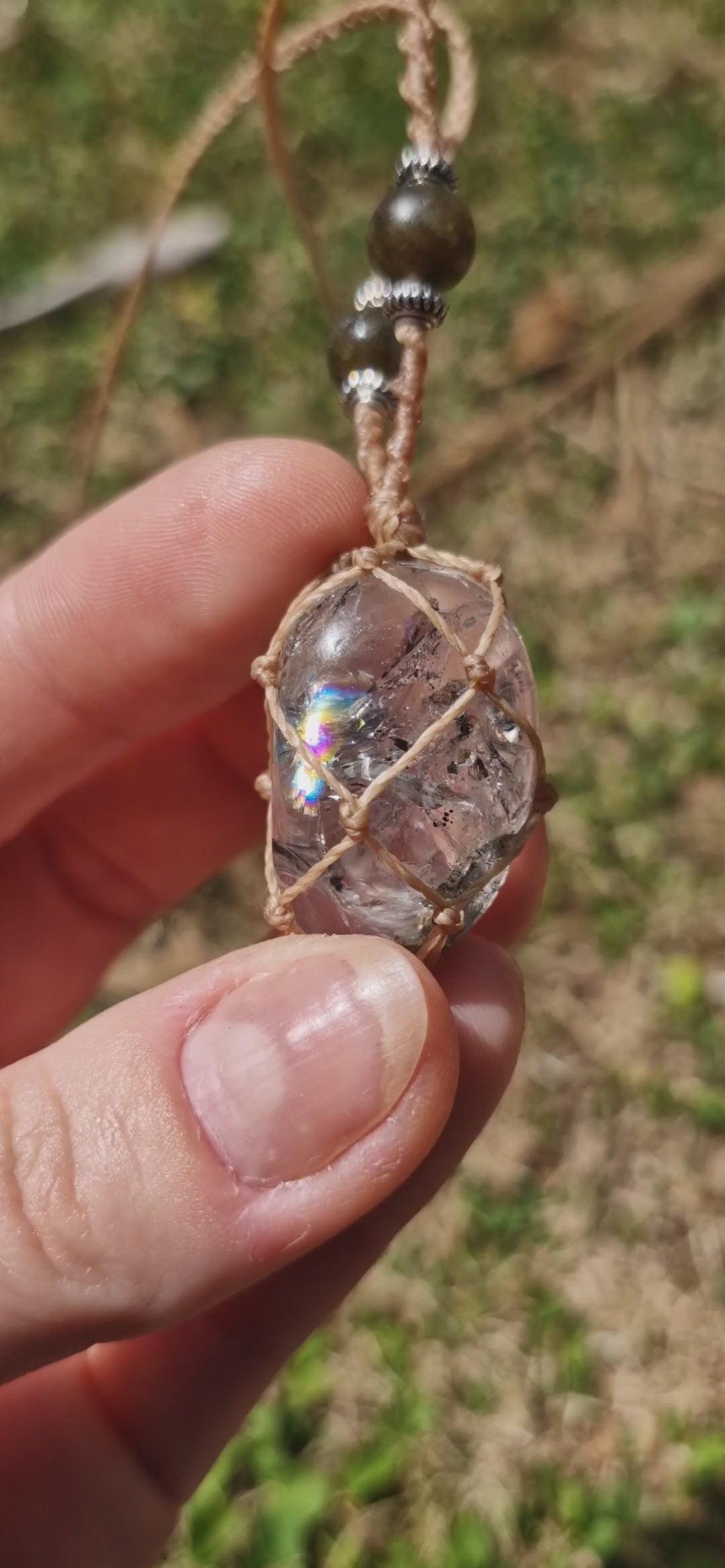 Lovingly made in Aotearoa New Zealand with Brazilian waxed cord, Tibetian Quartz crystal and labradorite beads.